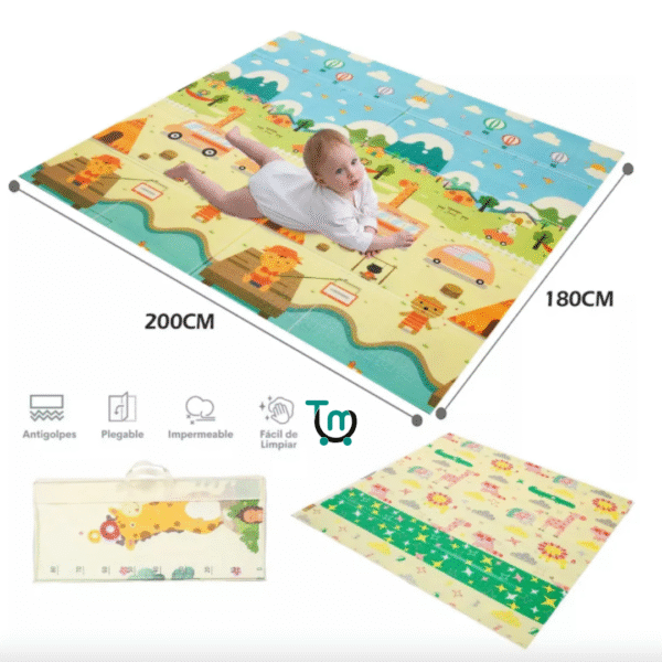Tapete Gateo Extra Grande Plegable Para Bebé 200×180 Cm Doble Faz