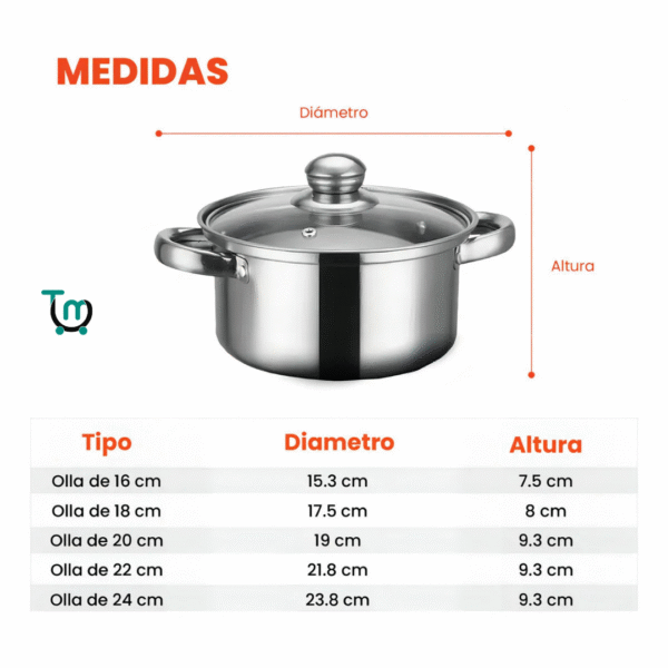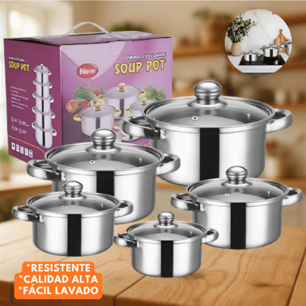 Juego de Ollas Batería de Cocina 10 Piezas Acero Inoxidable Tapas de Vidrio