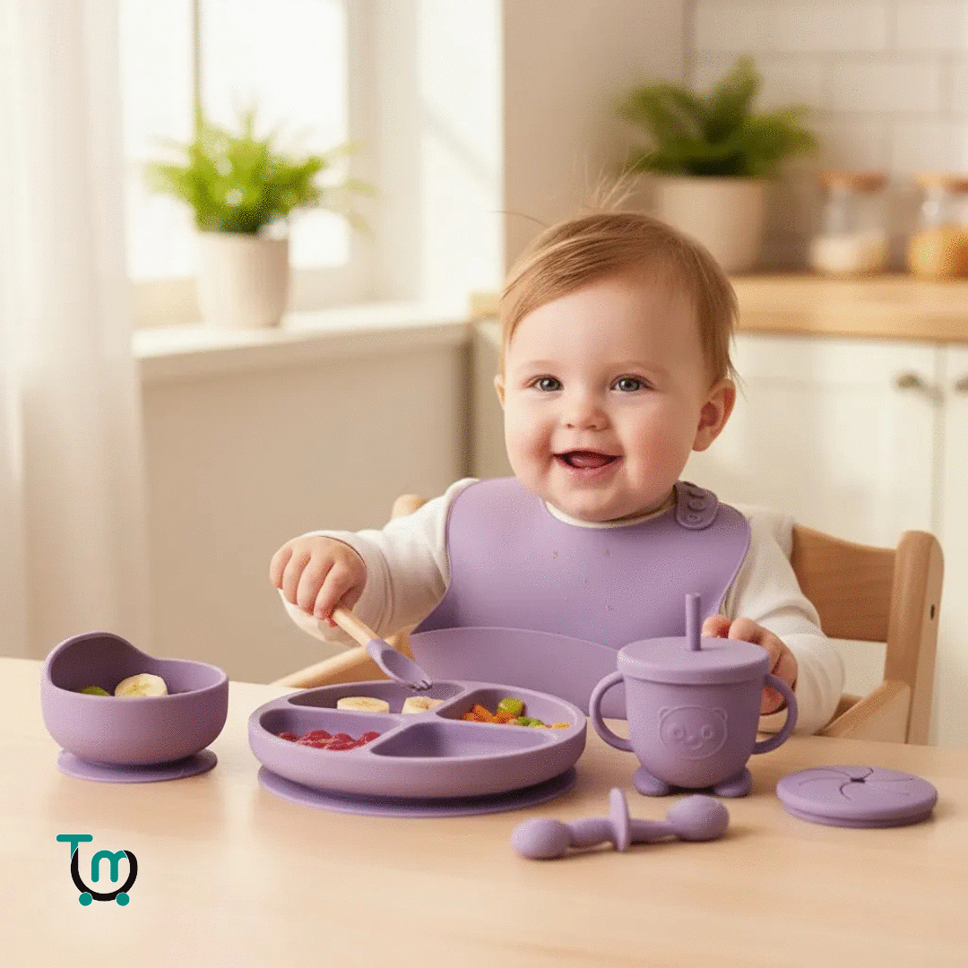 Con este set, tu bebé ganará independencia alimentándose solo y tú tendrás paz mental. Diseñado para el método BLW, nuestro plato con succión y babero extragrande están fabricados en silicona de grado alimenticio, 100% segura y libre de tóxicos. Es la inversión en tranquilidad que tu familia necesita.